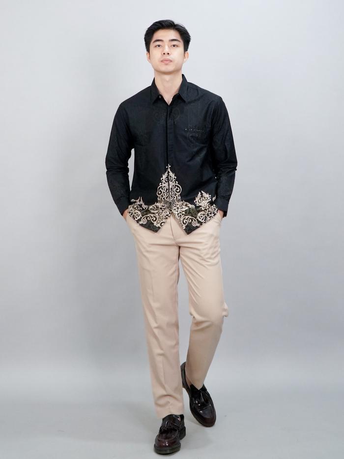 Swipe Up Kemeja Batik Pria Modern Slimfit Katun Baju Formal Lengan Panjang Antasena Hitam - Black PJ M