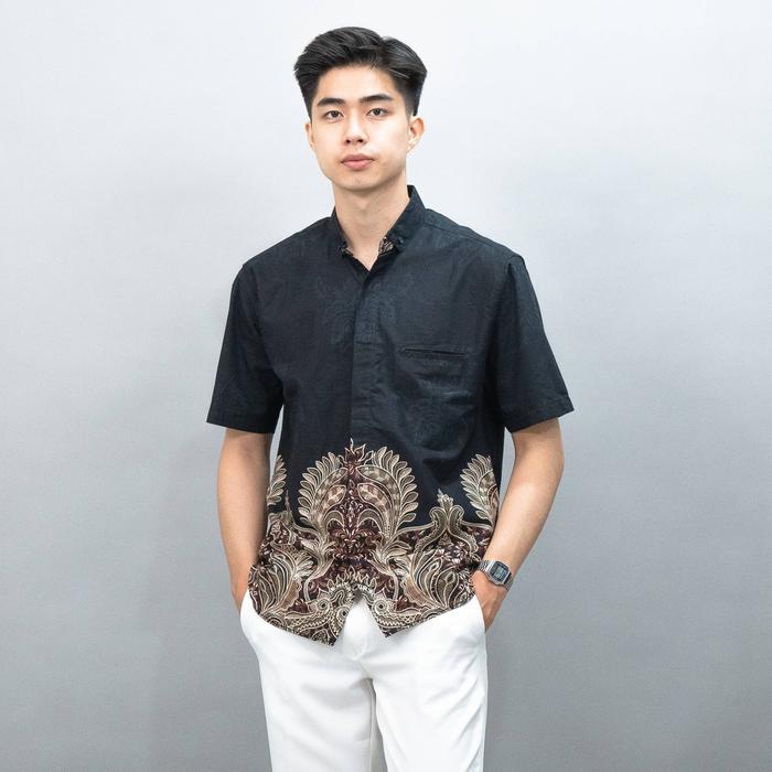 Swipe Up Kemeja Batik Pria Modern Katun Slimfit Lengan Pendek Charisma Black - Charisma Black M