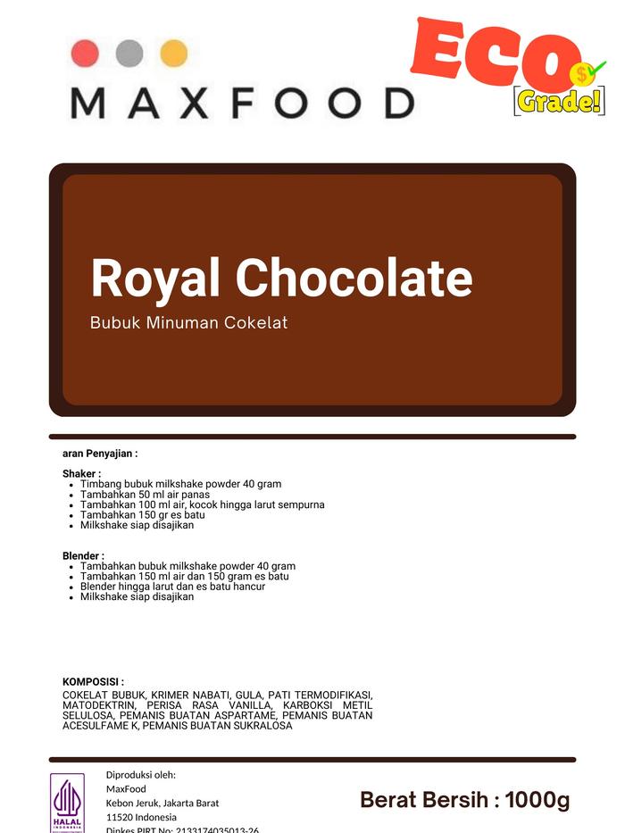 MAXFOOD - [ECO] Royal Chocolate Powder / Minuman Bubuk Rasa Royal Coklat Milkshake Ekonomis 1 KG