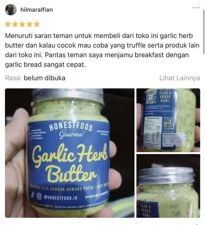 Garlic Butter HONESTFOOD/Mentega Bawang Putih Premium/Bahan Makanan/Olesan roti/Topping Pasta/Steak