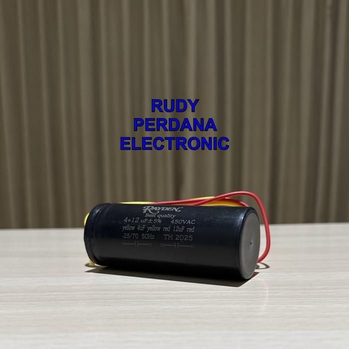 KAPASITOR BULAT DOUBLE MESIN CUCI 4+12UF 450V 4+12 UF 450 VOLT CBB60 RAYDEN