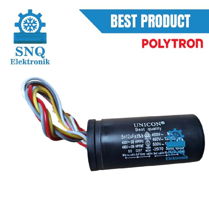 Capasitor mesin cuci Polytron dua tabung 12+5 uf - Kapasitor 12 uf dan 5 uf untuk mesin cuci 2 tabung polytron