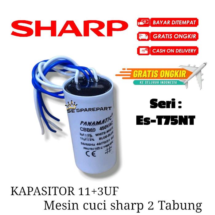 ES-T75NT KAPASITOR MESIN CUCI 2 TABUBG 4 KABEL 11UF+3UF