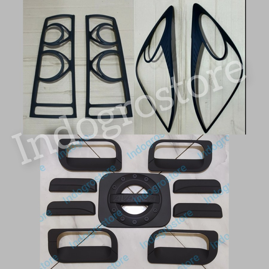 PAKET Garnish Cover List Lampu Depan Belakang & Outer Handle Tangki Hitam Doff Mobil New Avanza / Xenia 2008 2009 2010 2