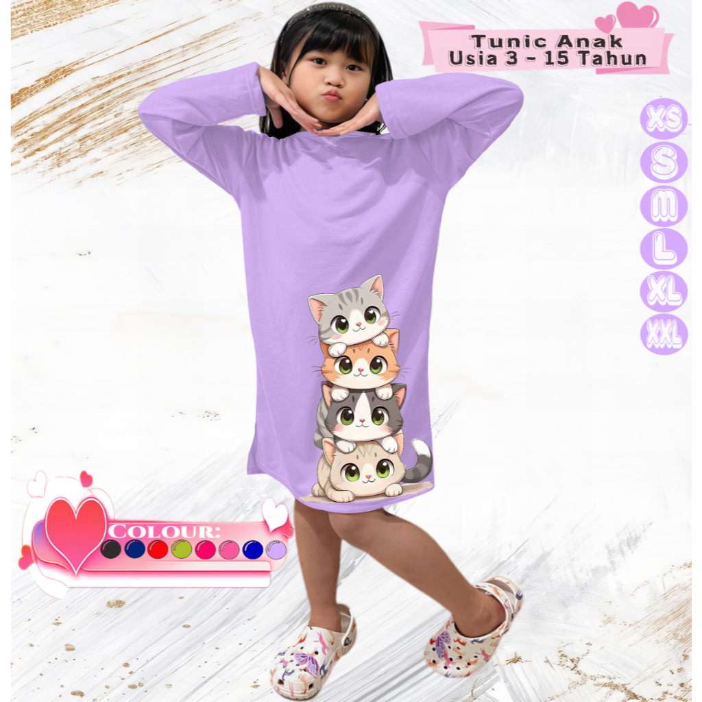 Tunic Anak Perempuan Lengan Panjang Umur 3-15 Tahun LOST OF CAT