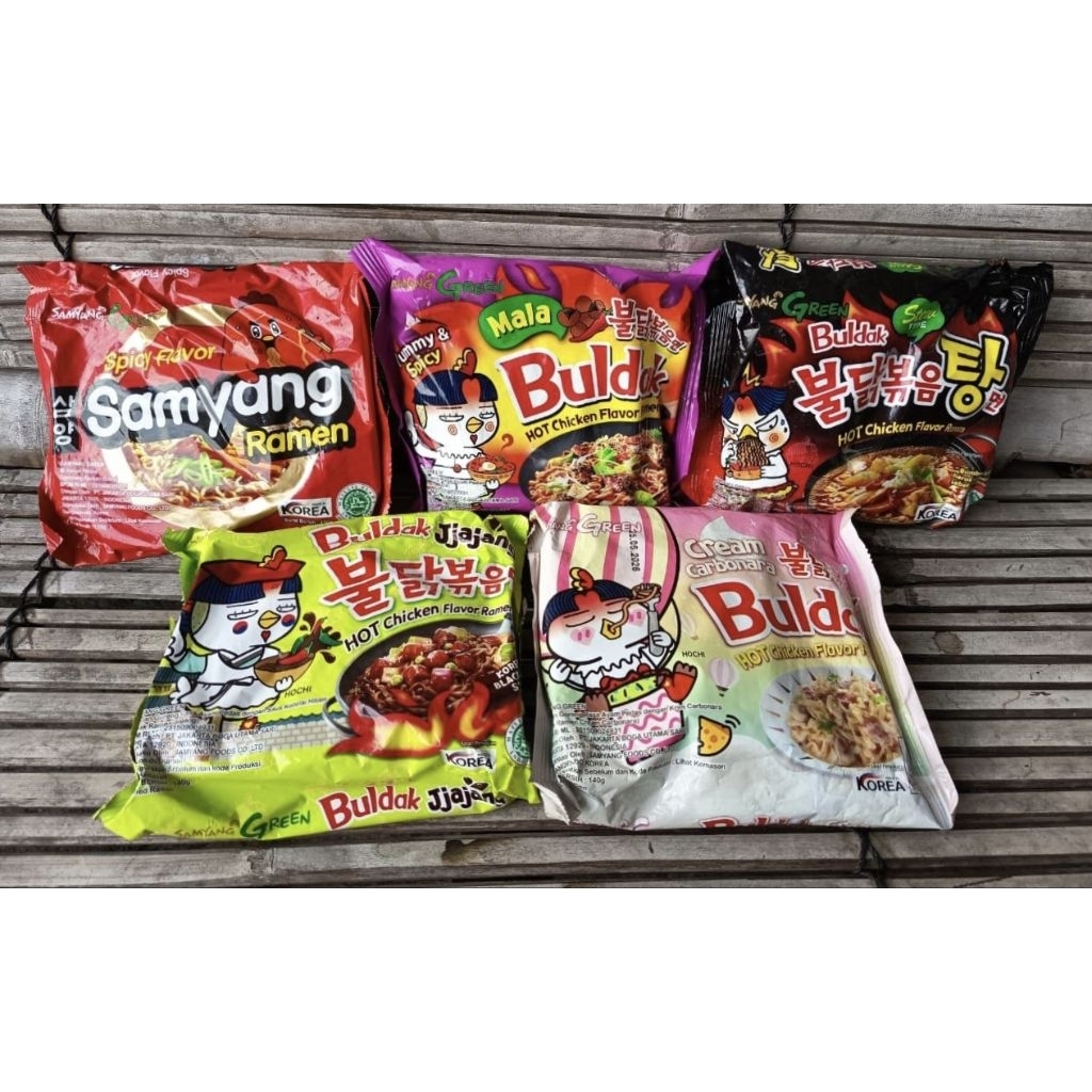 Jjajang, Ramen, Buldak Merah, Buldak hitam, Buldak kuning, Buldak pink