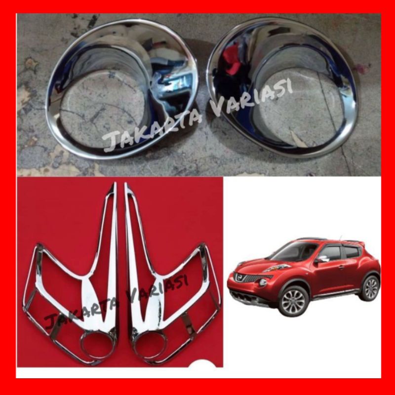 Paket Garnish Lampu Depan Belakang Nissan Juke Chrome Hitam Dop