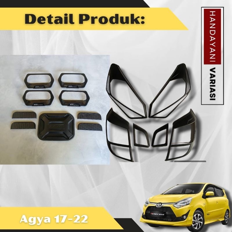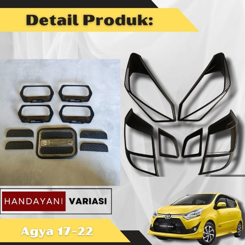 Paket Garnish Cover Lampu Handle Door Outer Pintu Dan Tank Cover Agya 2017-2022 Hitam