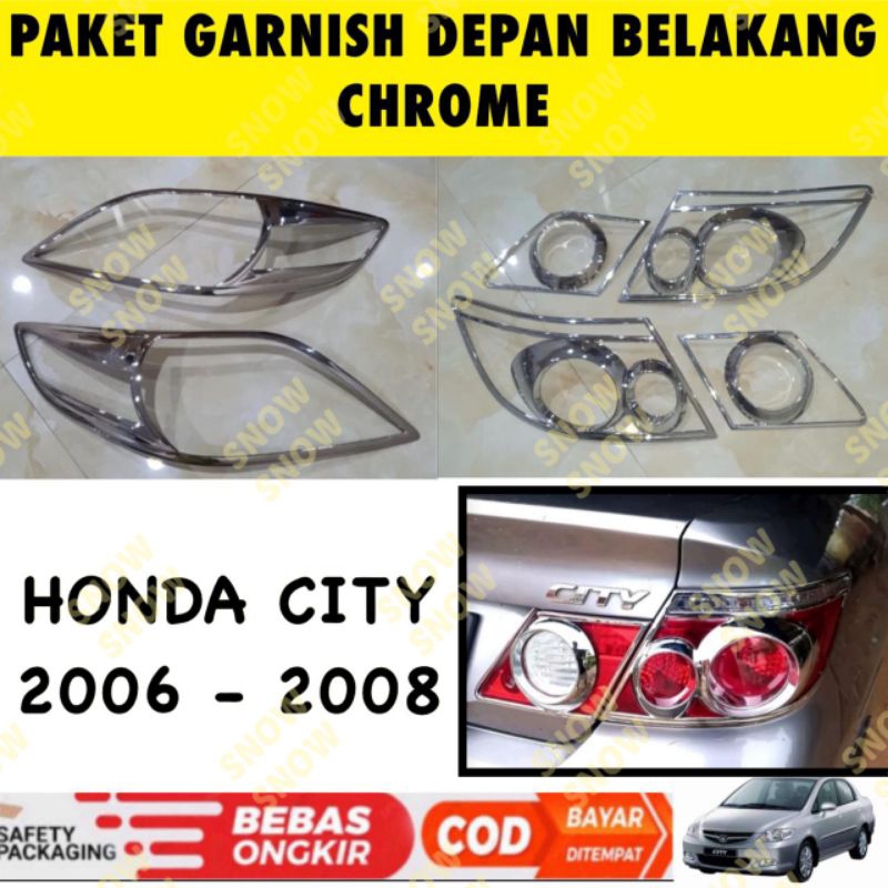 Paket Garnish Lampu Depan Belakang Honda City 2006 2007 2008 Chrome Hitam Doff