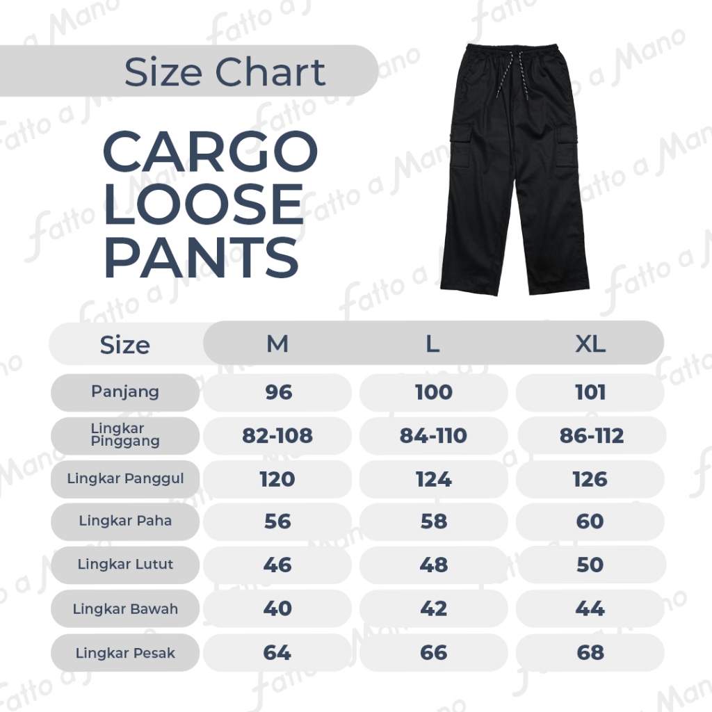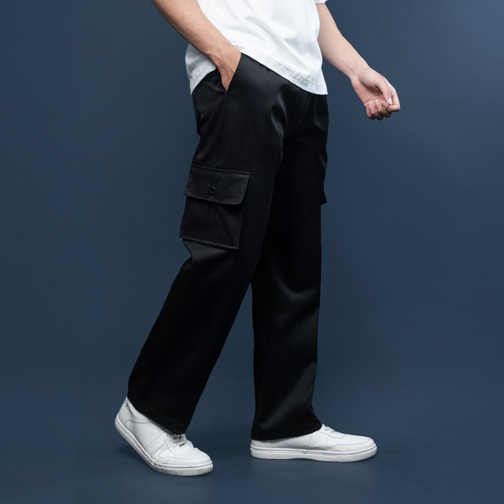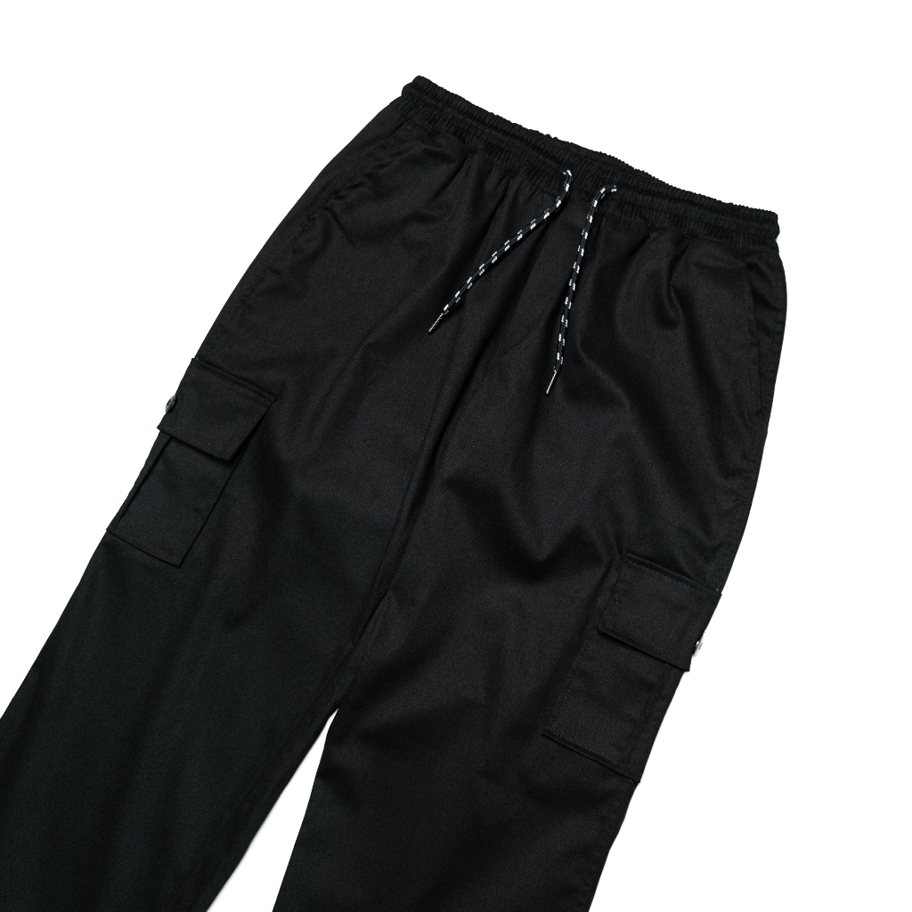 Fatto A Mano Celana Cargo Loose Fit Long Pants Pria Baggy Cotton Twill Tebal Hitam Black
