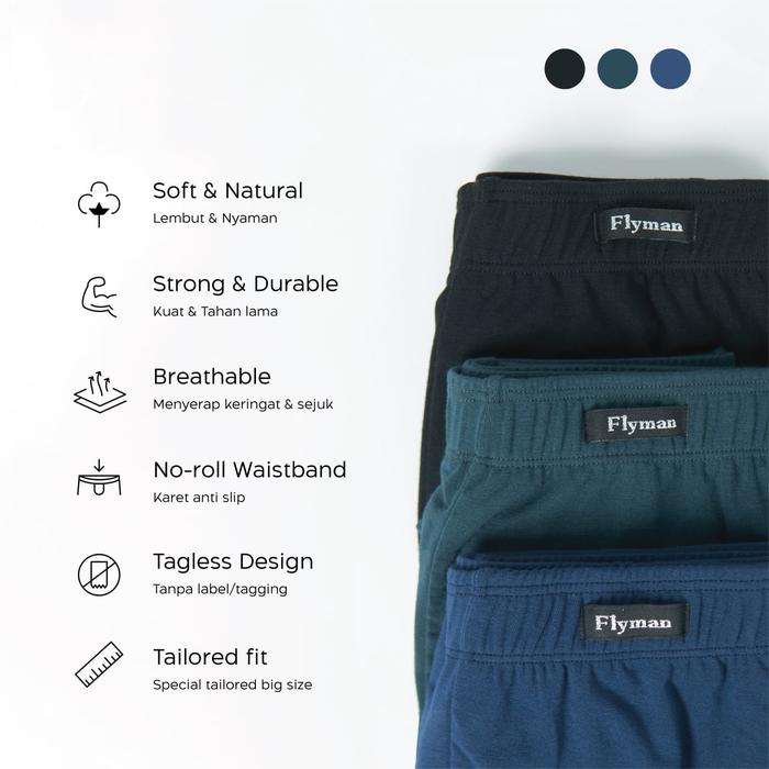 Flyman Boxer Pria Big Size Tencel Celana Dalam Laki Jumbo Ukuran Besar - Xxxl, Navy