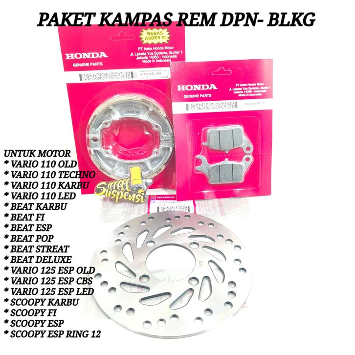 kampas rem belakang depan PROMO PAKET KAMPAS REM DEPAN SET KAMPAS TROMOL BELAKANG DICS CAKRAM KVB