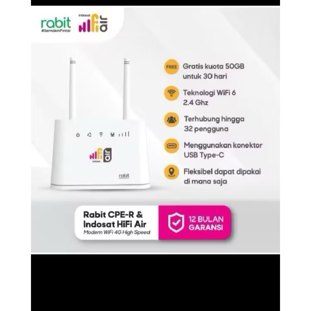 Modem Rabit CPE-R Router Wifi 4G LTE Hifi air Router Wifi 6 USB Type C Free Kuota Best Seller