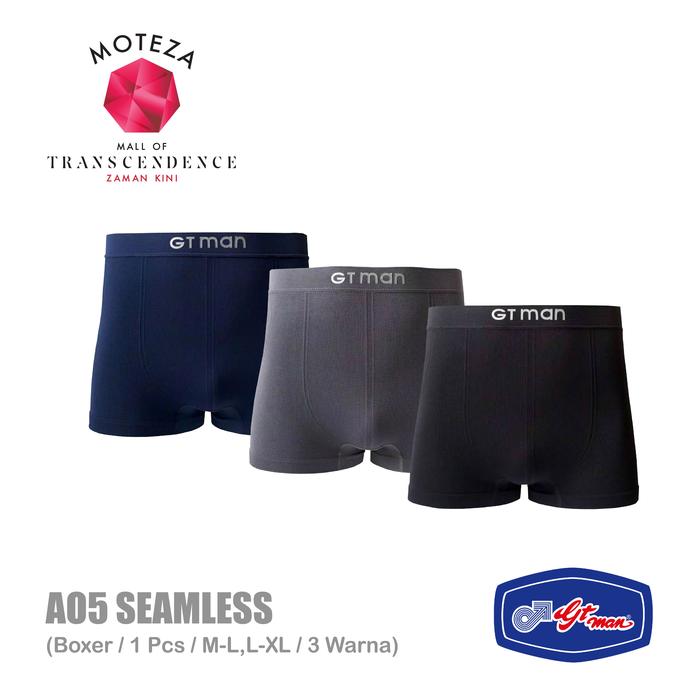 Celana Dalam Underwear Boxer Pria - Gt Man Ao5 Seamless Jumbo Big Size Lembut Nyaman Spandex Sport - Abu-Abu, L - Xl