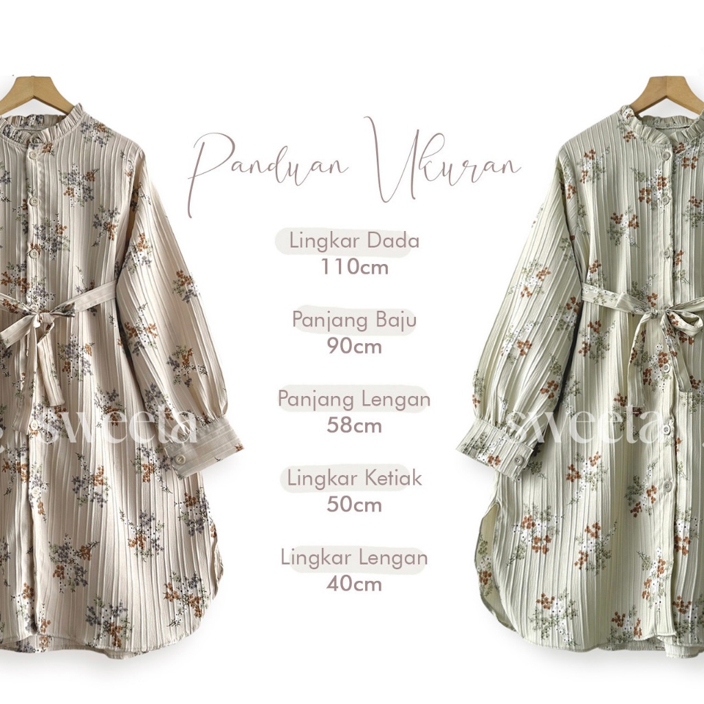Tunik Kancing Ikat Motif Flower | LD 110 cm | Lavanda | Korea Style | Wanita Muslim