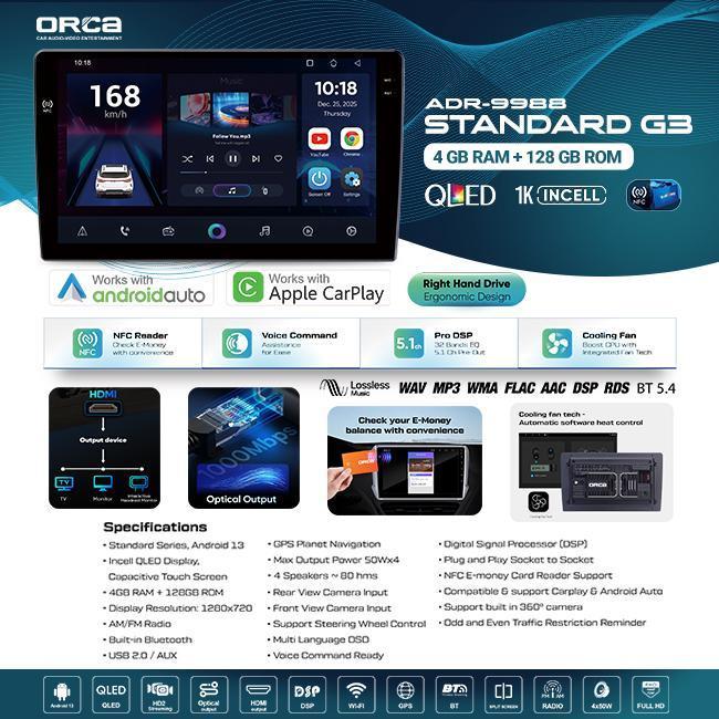 Head Unit Android Orca New Standar / Standart G3 Ram 4/128GB 9 inch dan 10 inch NFC Carplay RESMI
