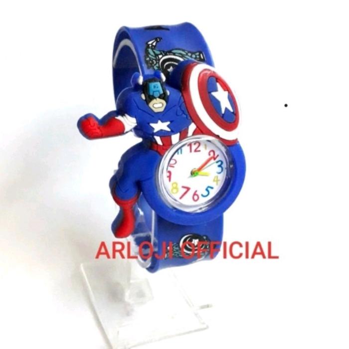 JAM TANGAN ANAK JEPRET/TEPUK CAPTAIN AMERICA + FREE BATERAI - MERAH