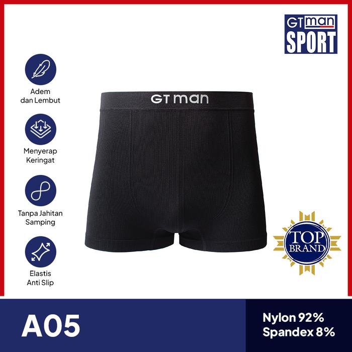 Boxer Celana Dalam Pria Gt Man A05 Isi 1 Pcs - Boxer Briefs Men - Black, M-L