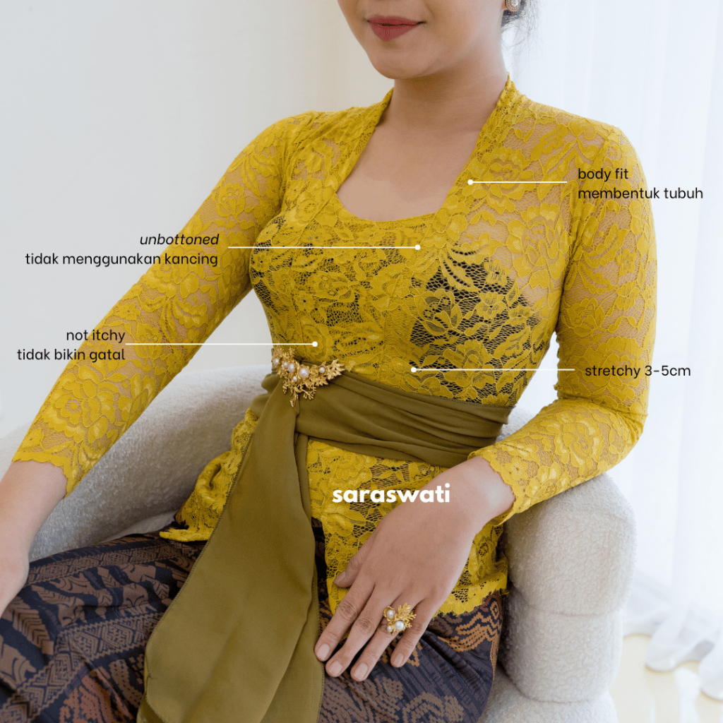 SATU SET KEBAYA Saraswati Kebaya Bali Brokat Premium Stretch Lengan Panjang | Kebaya Jumbo | Kebaya Big Size - Middy Set