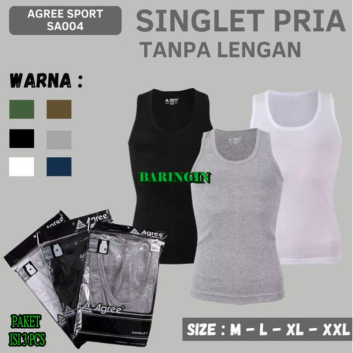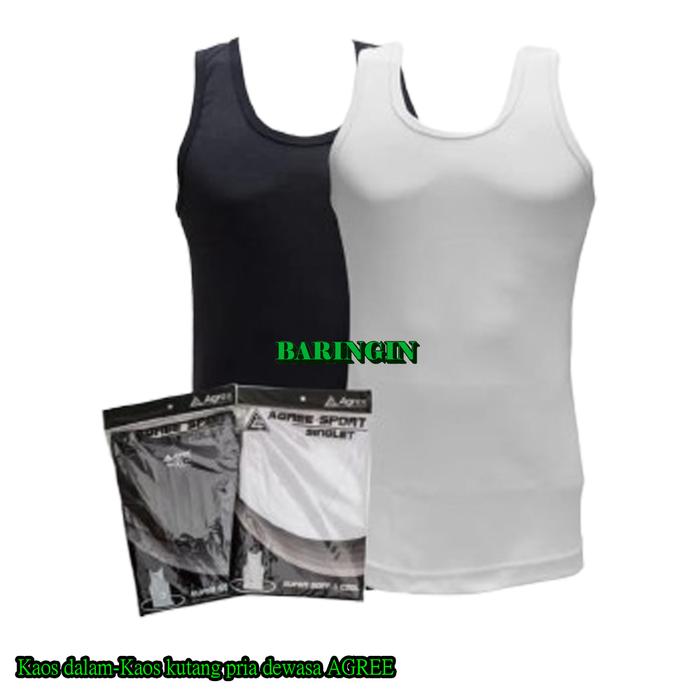 3 Lembar Kaos Dalam Pria Dewasa-Agree Singlet Cowok Polos Katun Keren Hitam Oblong Distro - Hitam - Abu- Putih, M
