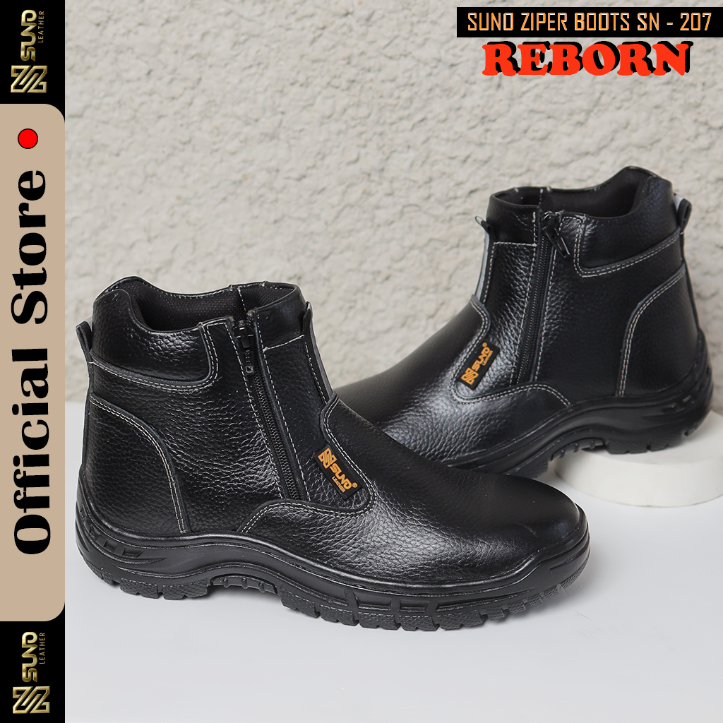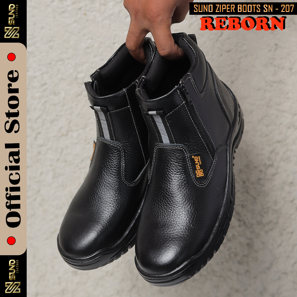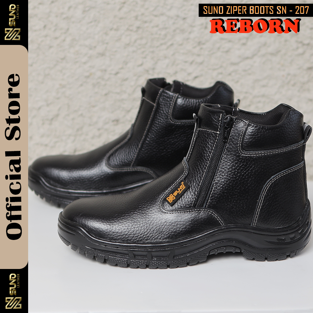 SN SUNO LEATHER Sepatu Safety Kulit Sapi Model Resleting Ujung Besi SFT-207H
