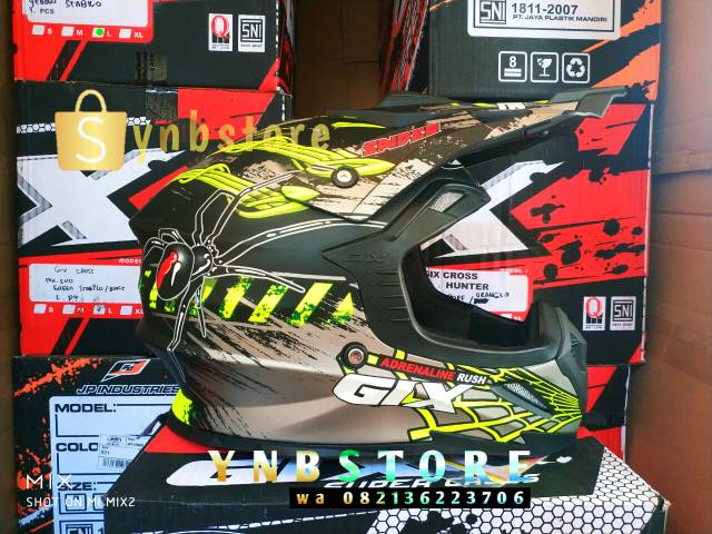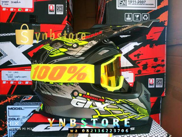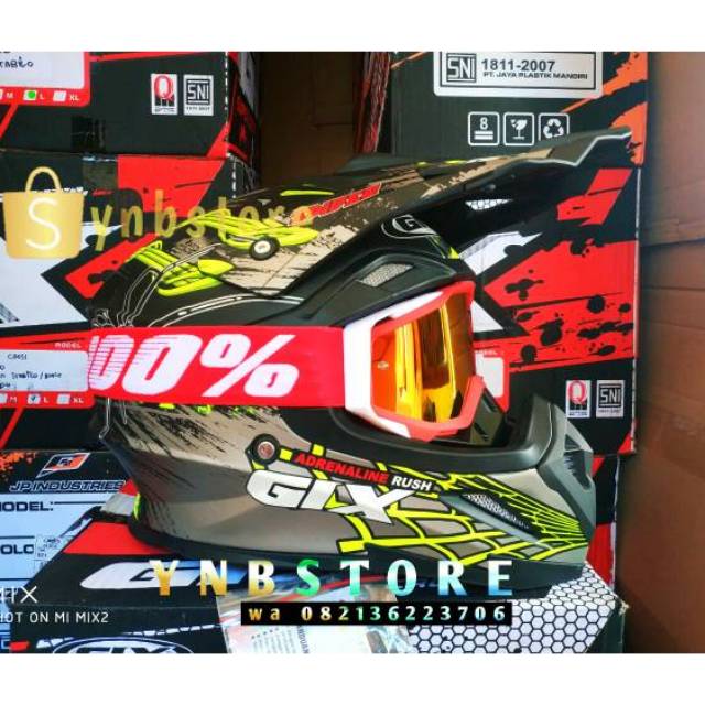 helm GIX moto Cross trail ktm klx crf Spider laba laba black doff yellow plus goggle 100% limited