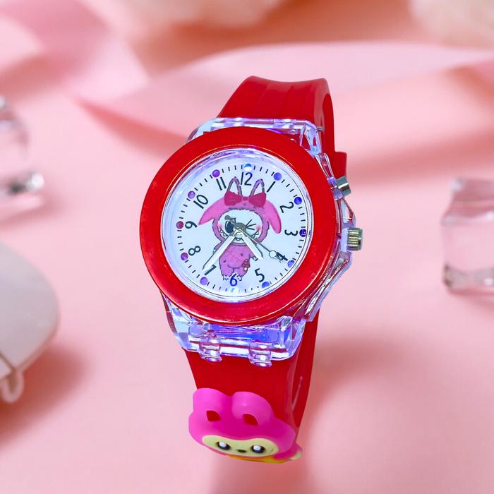JAM TANGAN ANAK KARAKTER LABUBU KADO ANAK HADIAH ANAK /JAM ANAK LAMPU LED SILICONE STRAP - PINK