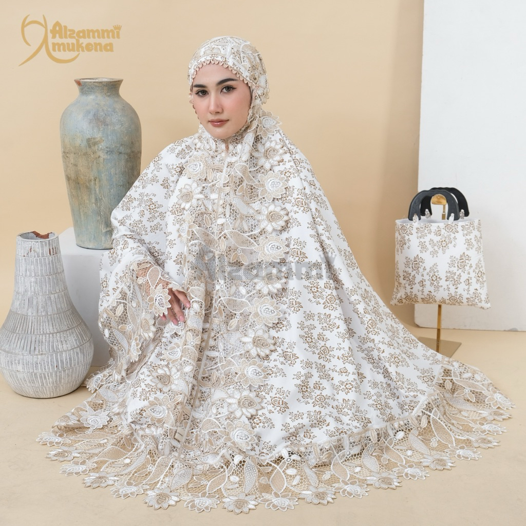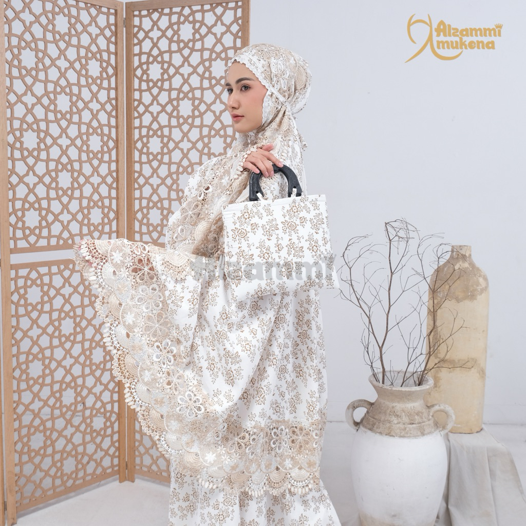 Mukena Dewasa Ameera Bahan Katun Foil Renda Mewah Full