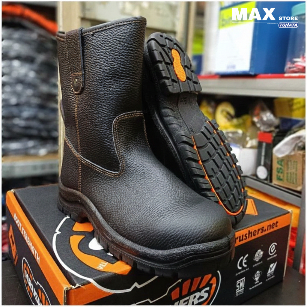 Sepatu Safety KRUSHERS TEXAS BROWN BLACK / Safty Boots Kerja Proyek KRUSHER Original