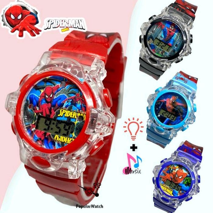 JAM TANGAN DIGITAL ANAK KARAKTER SPIDERMAN COWOK ADA LAMPU DAN MUSIC MELODY FASHION - SPIDERMAN, HITAM