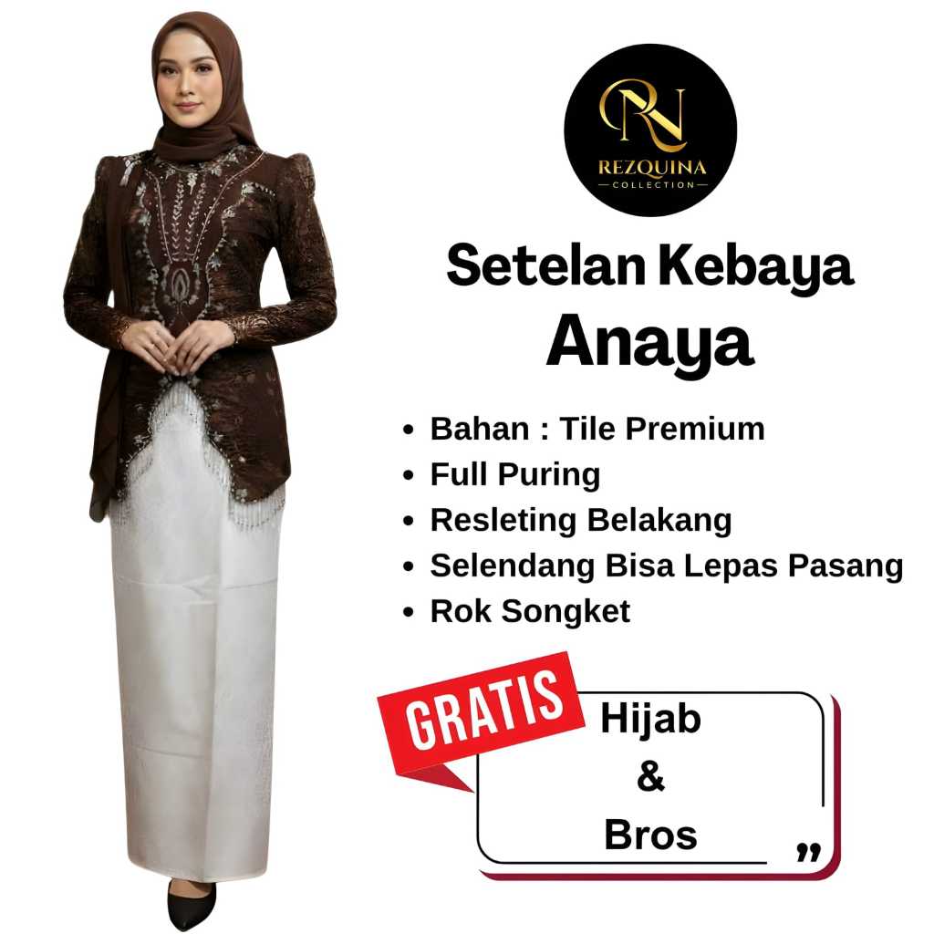 Set Kebaya Anaya Selendang Rok Songket Gratis Hijab dan Bros II Kebaya Songket Modern II Kebaya Wisuda