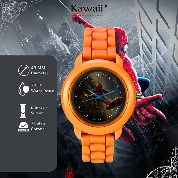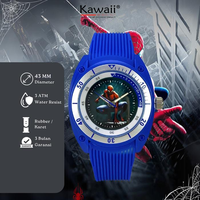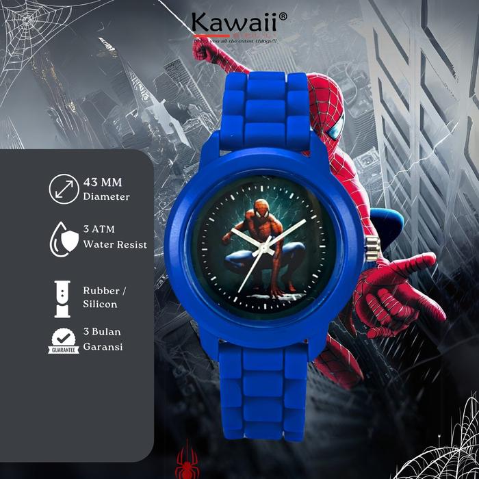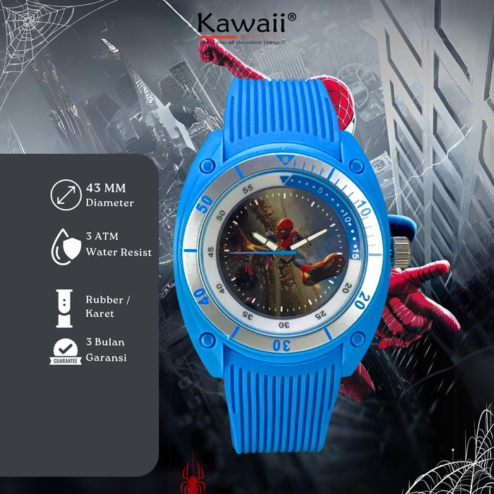 KAWAII JAM TANGAN SPIDERMAN ANAK ANALOG TAHAN AIR KARET SILICON WARNA-WARNI FASHION - BIRU MUDA V1