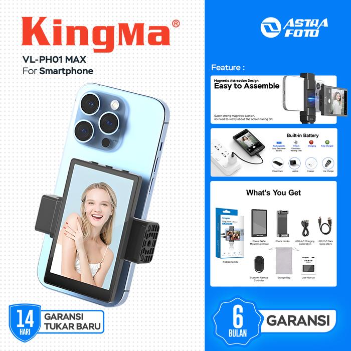 Kingma Vl-Ph01 Selfie Monitor Screen Phone Vlog For Iphone Handphone Smartphone