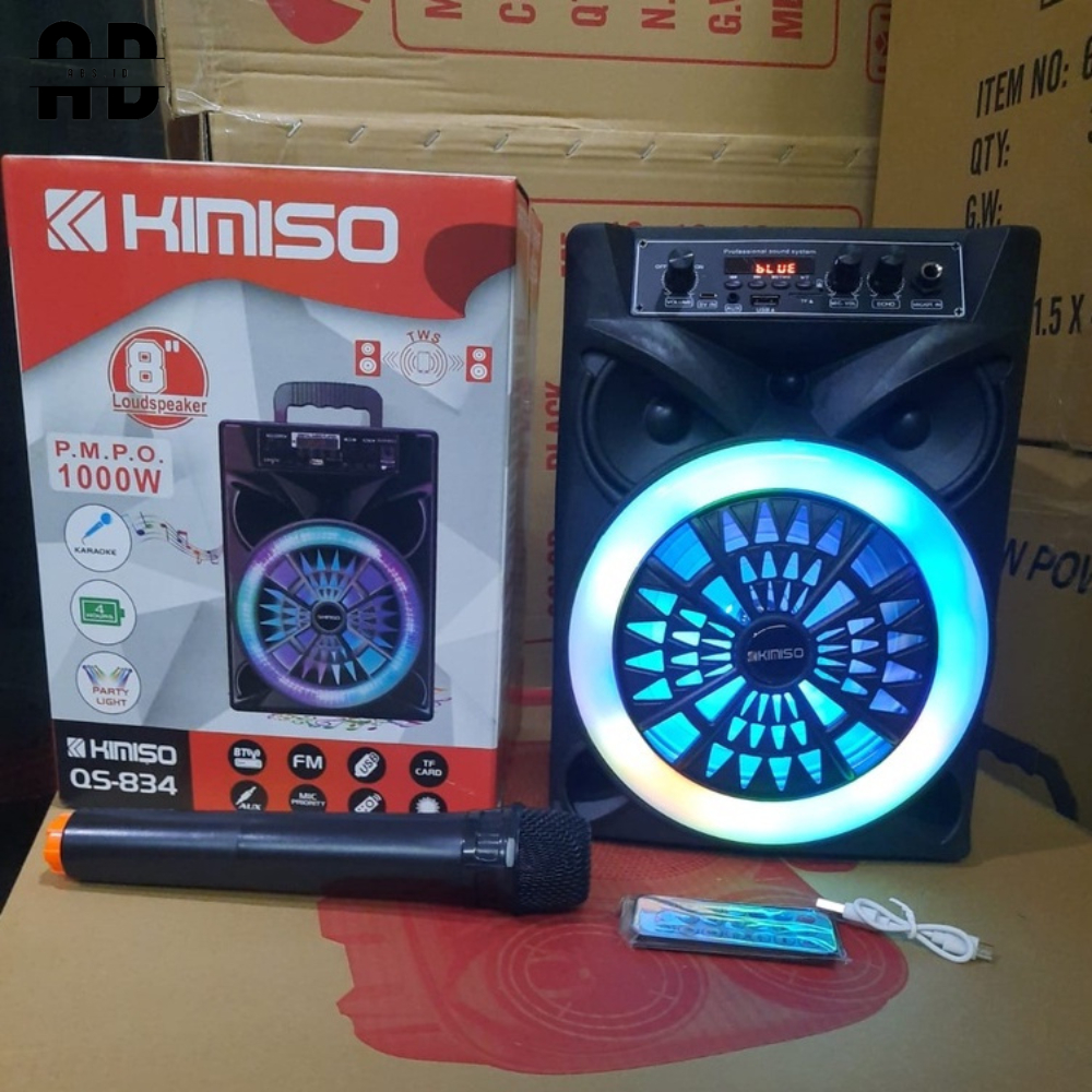 FLASH SALE Speaker Bluetooth Portable Karaoke Kimiso Qs834 LED 8 inch With Mic Karaoke