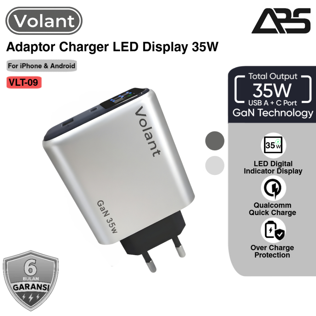 FLASH SALE VOLANT Charger GaN LED Display Indicator 35W Dual Port Fast Charging PD 2 Port USB Adaptor Quick Charger Adaptor