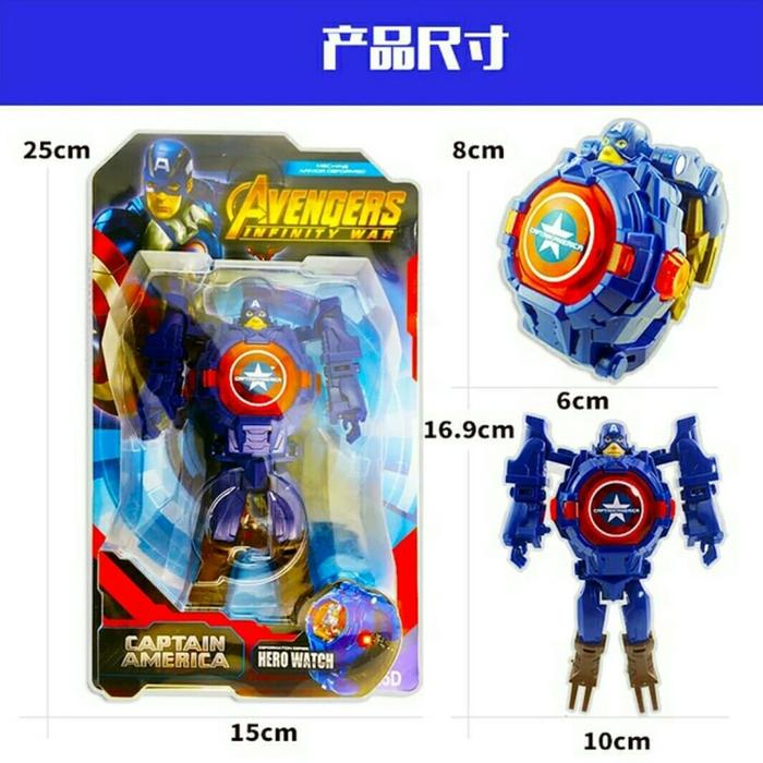 JAM TANGAN ANAK ROBOT WATCH BESAR CAPTAIN AMERICA + FREE 1 BATERAI - BIRU
