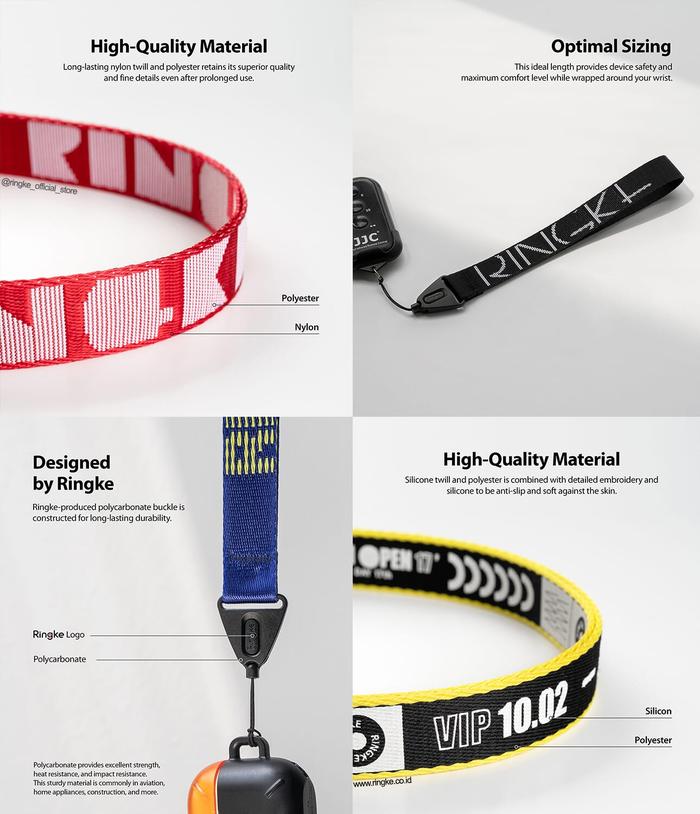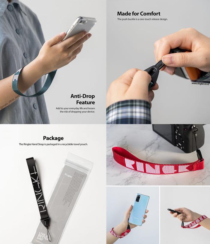Ringke Strap Compatible For Universal Handstrap Ticket Band Black Hitam Strap Handphone Tali Pengikat Gantungan Pengait