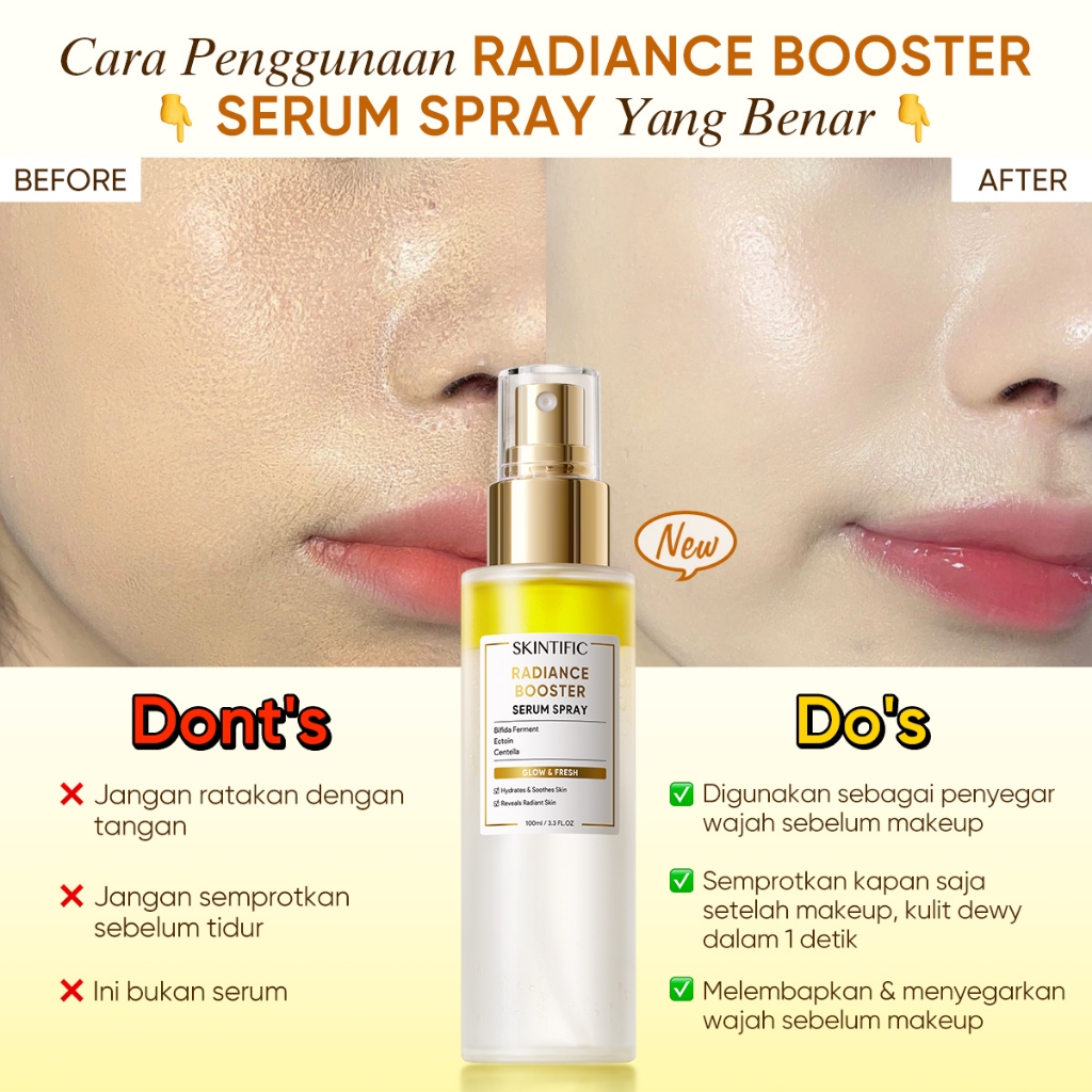 SKINTIFIC Glowing First Serum Spray | Radiance Booster Hydrating Kulit Lebih Halus Lembab Dalam Multifungsi Skincare Pen