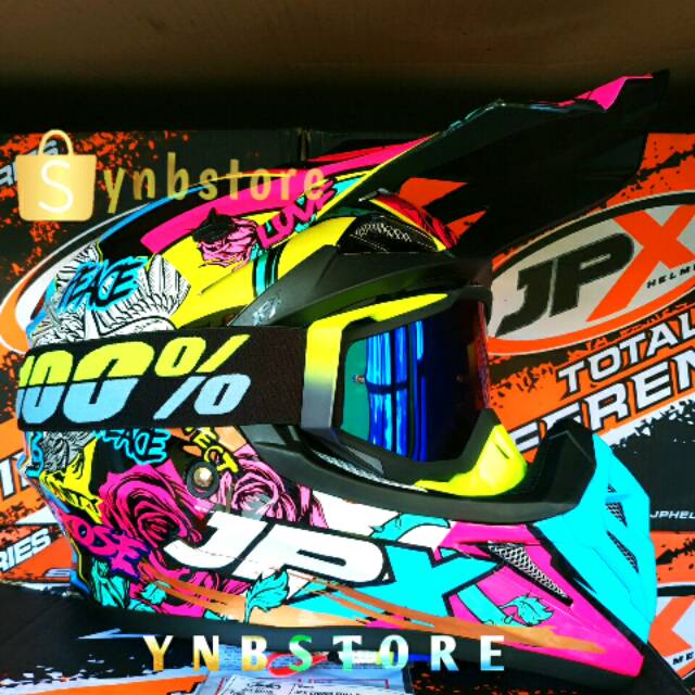 helm JPX moto Cross trail klx crf X28 peace rose burung black hitam gloss plus goggle 100%