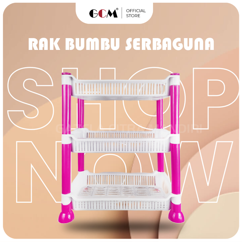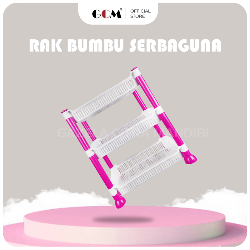 Rak Bumbu Dapur Susun 3 Tingkat Estetik Plastik Pink Biru Hijau Ungu Rak Serbaguna