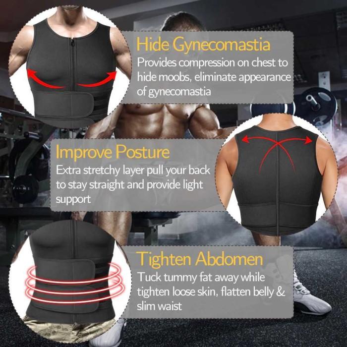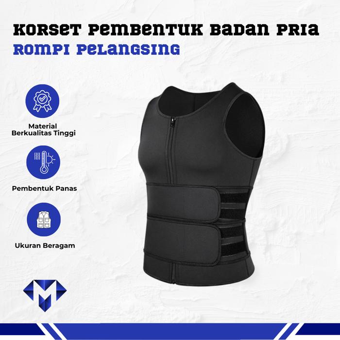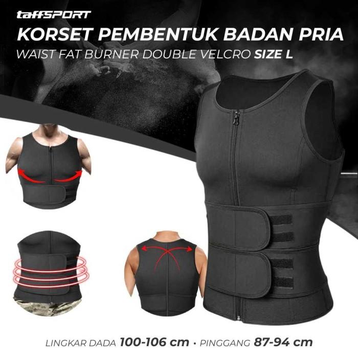 Korset Pembentuk Badan Pria Rompi Pelangsing Bentuk Otot Perut Bakar Lemak Shaper Corset Vest Single Velcro -Black - Do