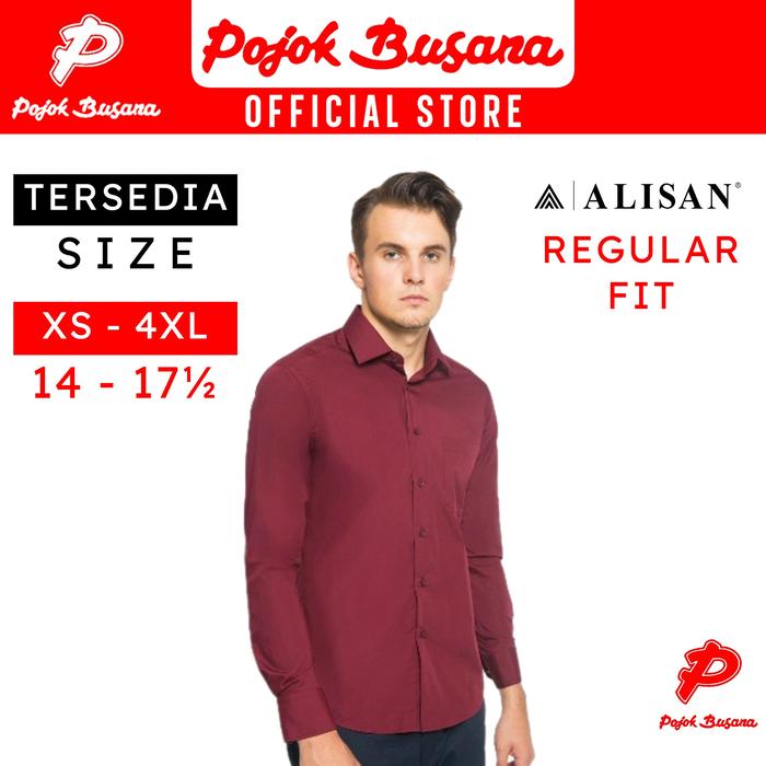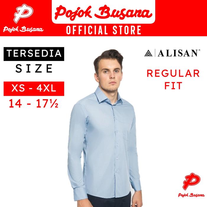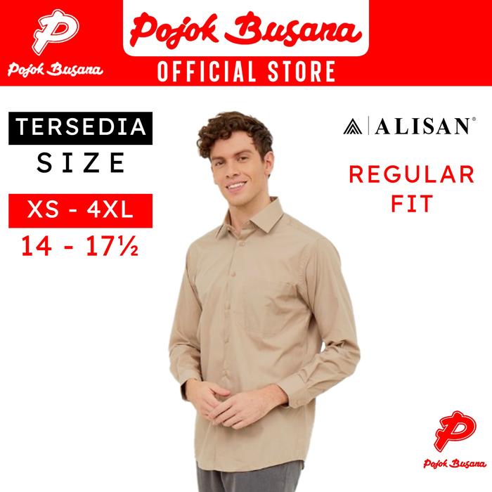 Pojok Busana Alisan Kemeja Lengan Panjang Polos Pria Reguler Fit - Putih Reg, 14 (Xs)