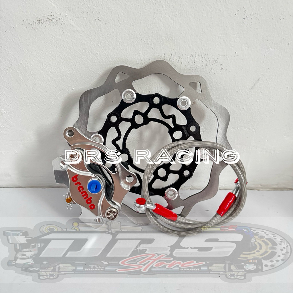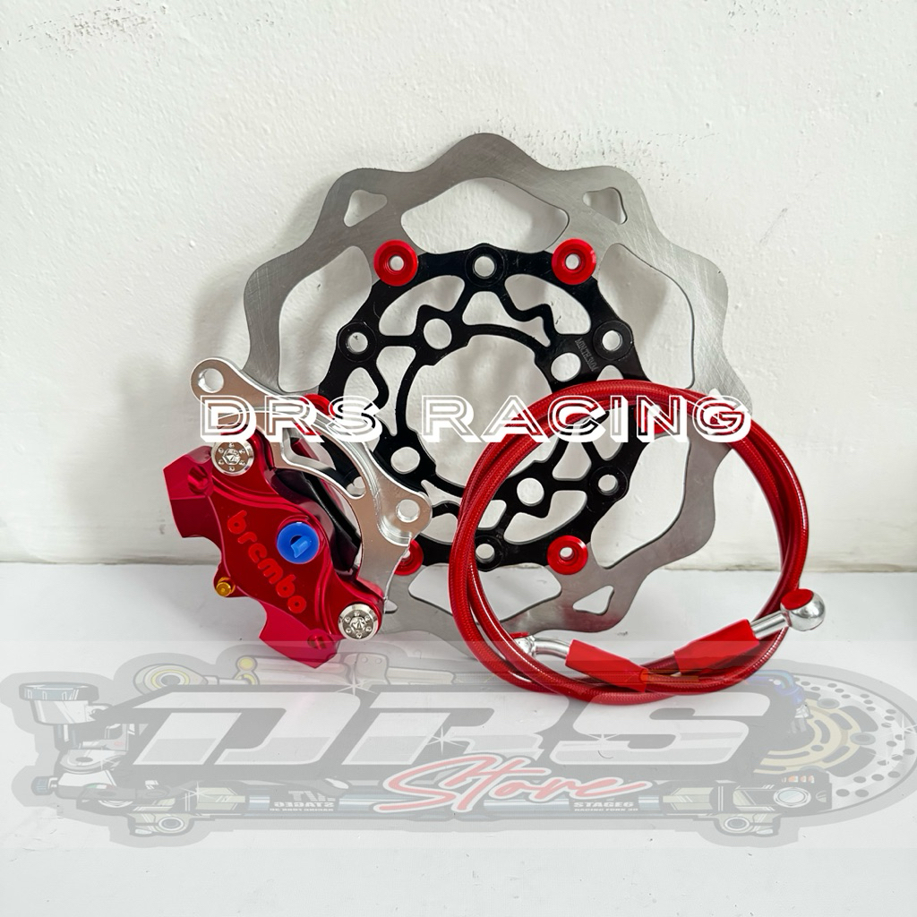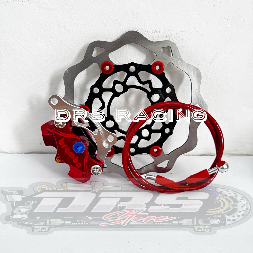 KALIPER 2 PISTON BRMB CNC + DISC CAKRAM DEPAN 220MM MODEL GALFER + SELANG REM JUP MX OLD/NEW, JUP Z1, JUP ROBOT, JUP BUR