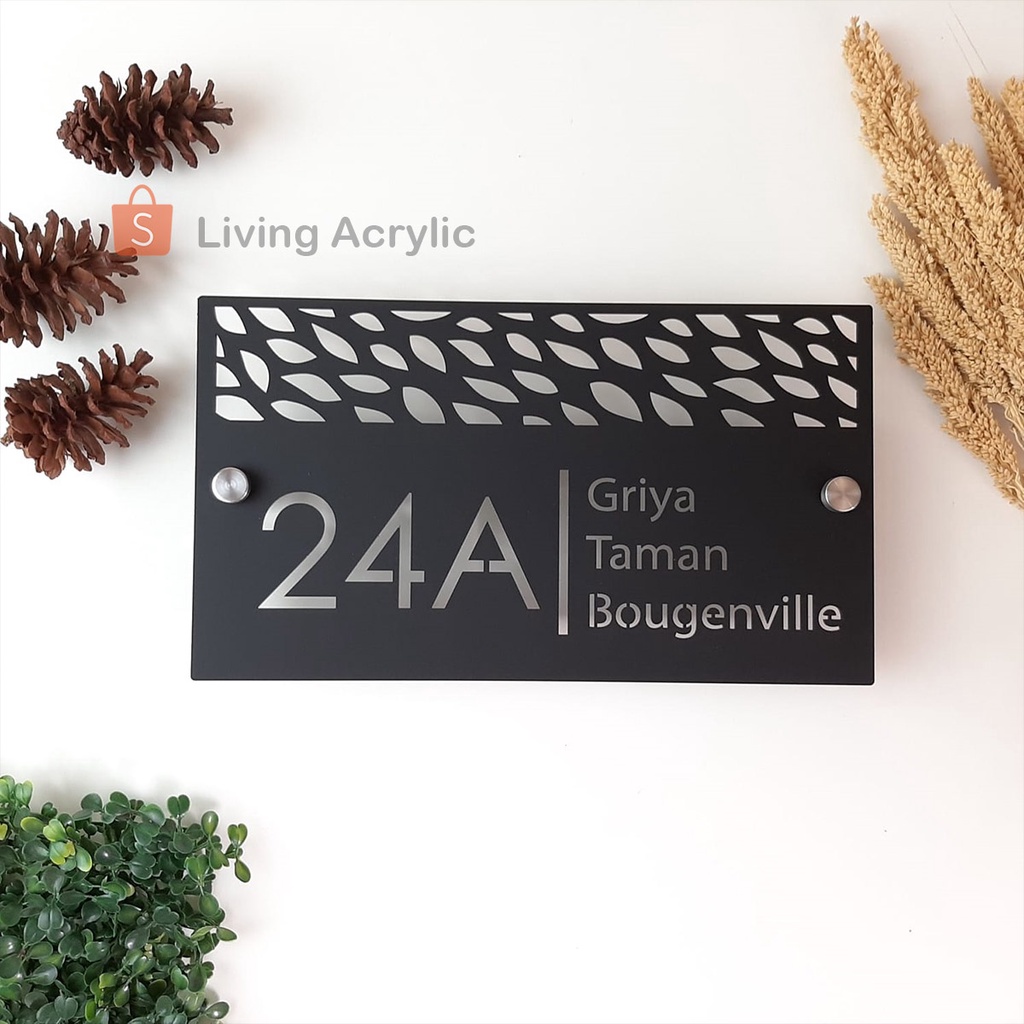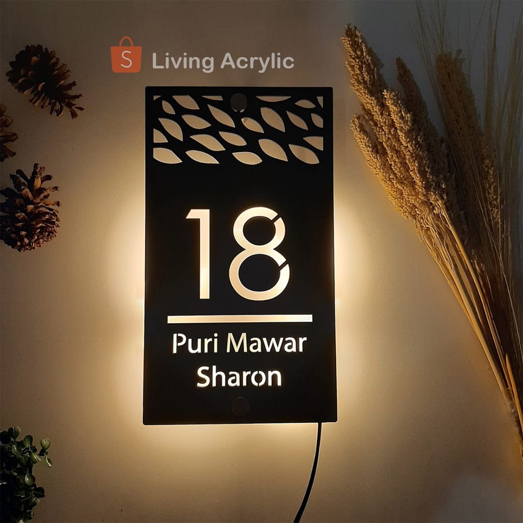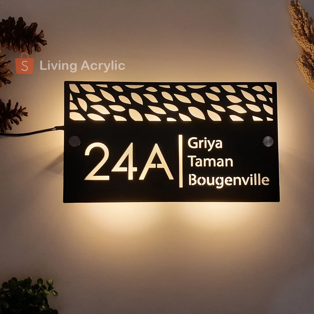 FLASH SALE Nomor Rumah Akrilik Lampu LED 1 Layer Black Doff Nomer Rumah LED