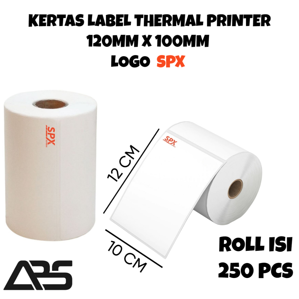 FLASH SALE KERTAS LABEL THERMAL SPX PRINTER 100 X 120 MM 250 LEMBAR LOGO SPX