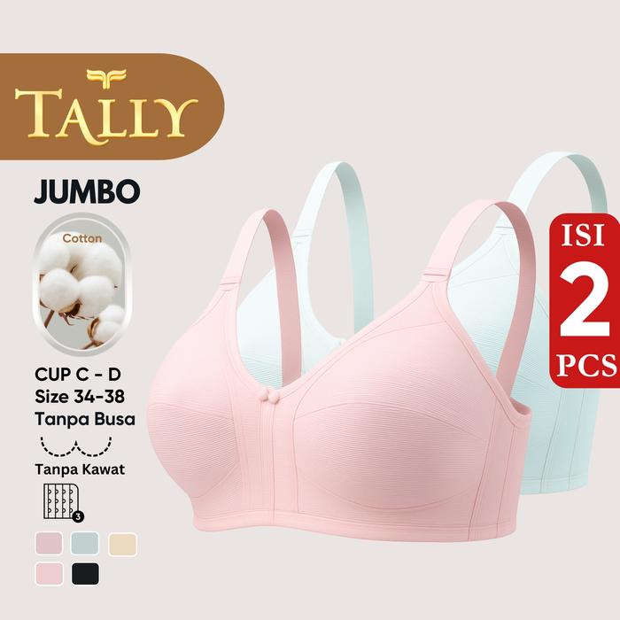 Tally Paket 1 Pcs Atau 2 Pcs Bra Tanpa Kawat Tanpa Busa Cup C - D Kait 3 Daily Bra Polos Lembut Bh 2099 / 2095 Sarwendah