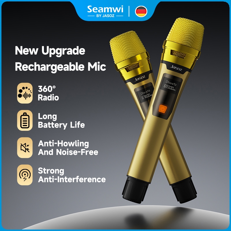 Seamwi K104 Double Wireless Microphone Mikrofon Profesional Karaoke Luar Ruangan Dengan Baterai Charger