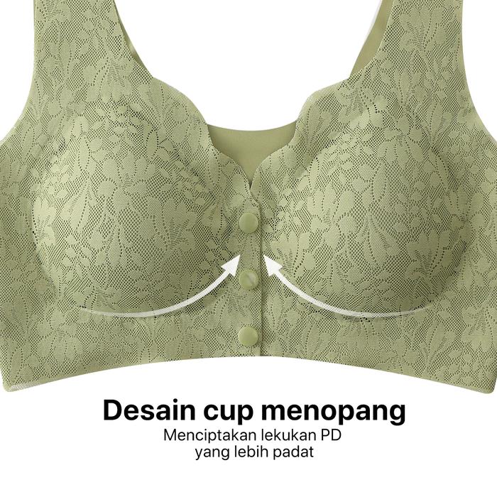 Greney L.W.L Bra Rompi Renda Pakaian Dalam Wanita Tipis Push Up Bh Sport Tanpa Kawat Kancing Depan Busa-89697 - Kulit, 2
