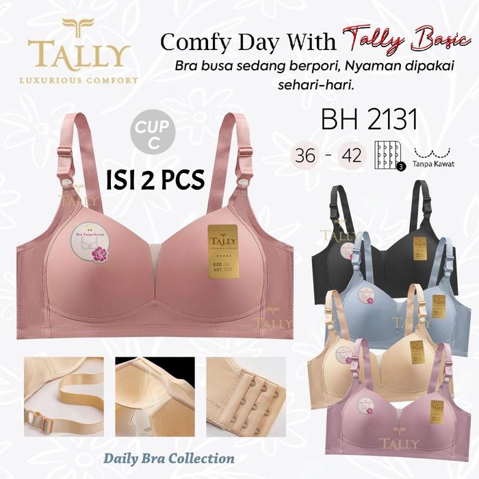 Isi 2 Pcs Bh Tally 2131 Busa Tipis Tanpa Kawat Bra Cup D Besar Kait 3 - Size 42, Isi 2 Pcs