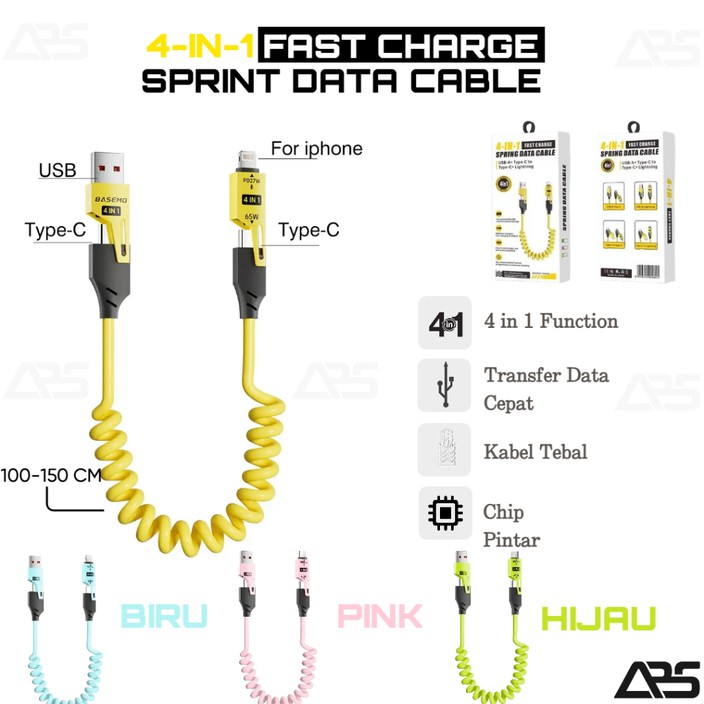 FLASH SALE Kabel Data Charger Fast Charging Spring 4 in 1 65W Kabel Lightning Type C to C for Android IOS Typec